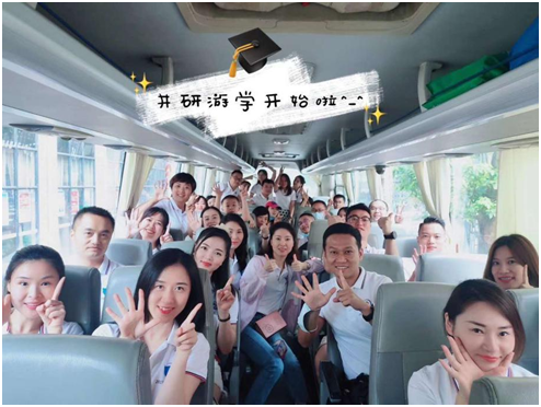 经过班委们和邹宏同学的精心策划和精细安排,7月4日早上9点半,19级领航班的同学们集结完毕,乘坐大巴车前往目的地——井研县。