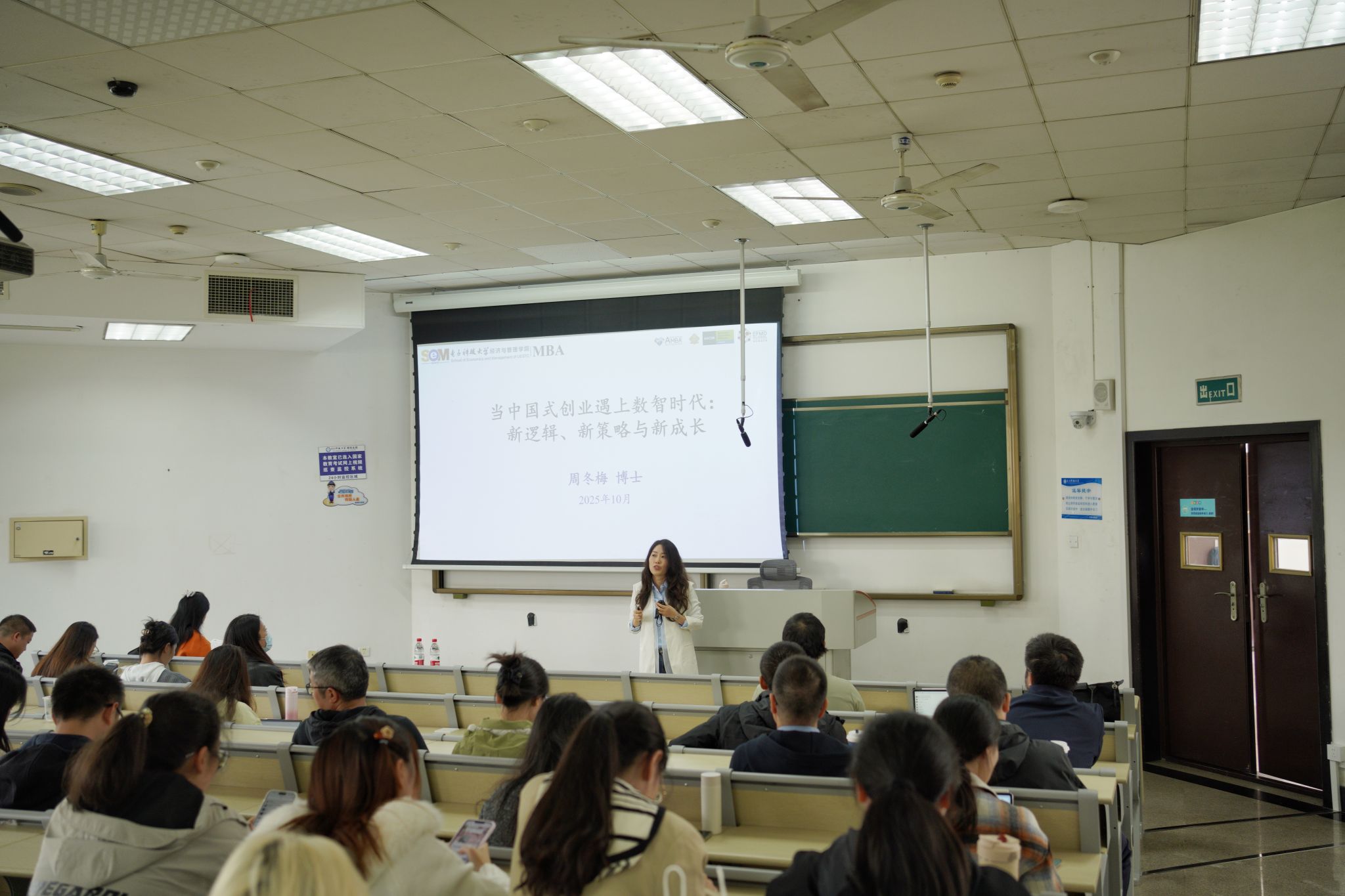 10月25日中午,主题为《当中国式创业遇上数智时代:新逻辑、新策略与新成长》的精彩讲座在电子科技大学沙河校区二教305教室成功举办。本次讲座由电子科技大学经济与管理学院MBA教育中心主办,特邀学院周冬梅副教授主讲。她长期致力于创新创业领域研究,主要研究方向包括技术创业、平台创业及新创企业成长等。