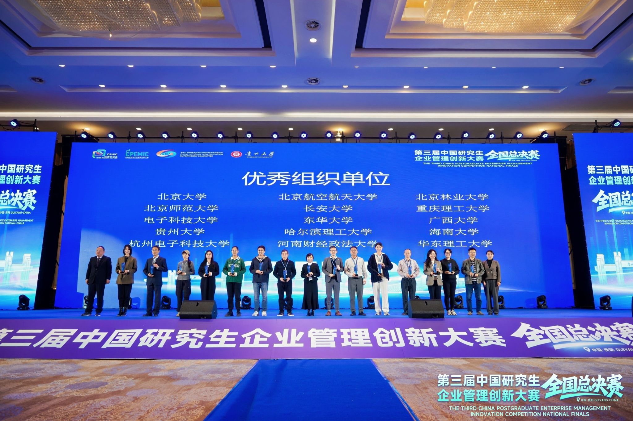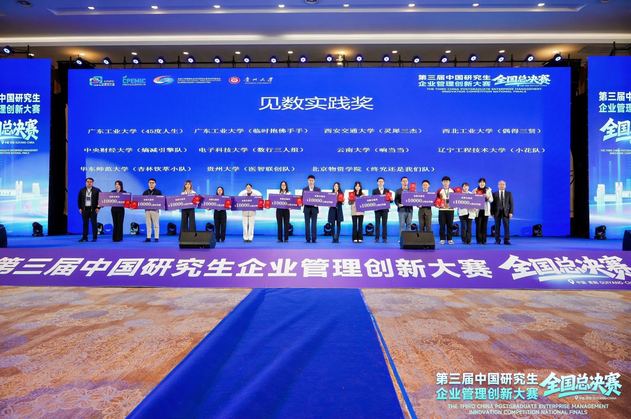 2025年11月8至9日,第三届中国研究生企业管理创新大赛全国总决赛在贵阳圆满落幕。本届大赛共有来自全国150所高校的411支队伍晋级全国总决赛。电子科技大学参赛队伍荣获一等奖2项,二等奖7项,三等奖3项;学校连续三年获评“优秀组织奖”。其中一等奖获奖团队“数行三人组”同时获“见数实践奖”。我校一等奖数量及获奖总数均位列全国前10%,展现出卓越的创新实力与团队风采。