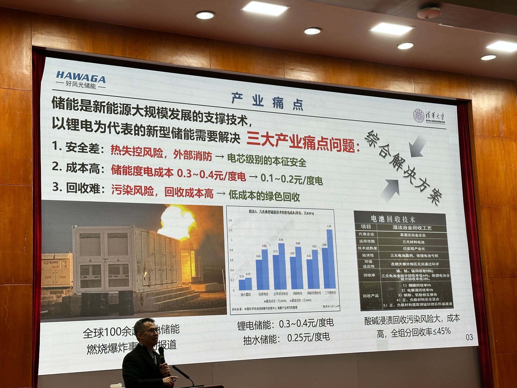 陈永翀教授从储能产业的战略价值切入,明确指出储能是支撑新能源大规模发展的关键核心技术。他坦言,当前全球储能产业虽蓬勃发展,但安全隐患问题日益突出,近年来已公开报道百余起电池储能燃烧爆炸事故,严重制约行业高质量发展,突破储能电池本征安全与控制技术成为亟待解决的行业痛点。在此背景下,团队研发的半开放储能电池凭借“本征安全、延寿降本、绿色回收”三大颠覆性技术优势,为电化学储能的核心痛点提供了系统性解决方案。