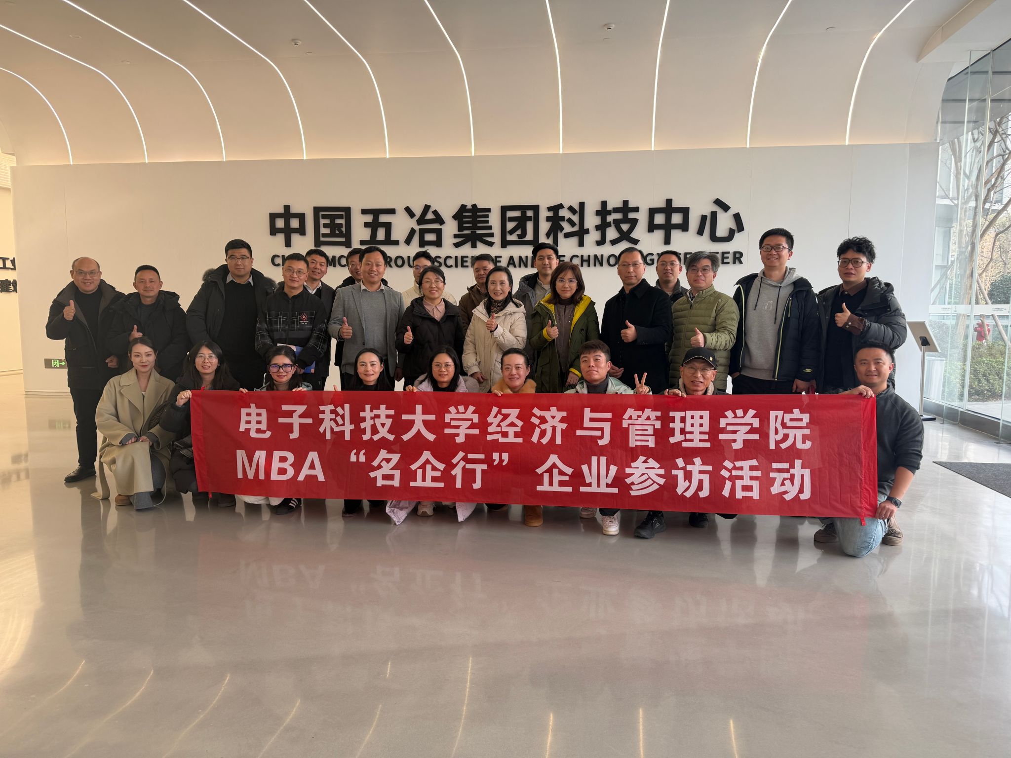 1月26日,电子科技大学经济与管理学院MBA 教育中心组织师生代表团,开展了一场别开生面的“名企行”活动。在 MBA 教育中心主任宋艳、副主任王国锋以及白春光教授的带领下,学院教师、业界导师及MBA学生、校友一行,走进中国五冶集团科技中心,深度探秘这座被誉为会“呼吸”的超级建筑,共话建筑行业的绿色化与智能化未来。