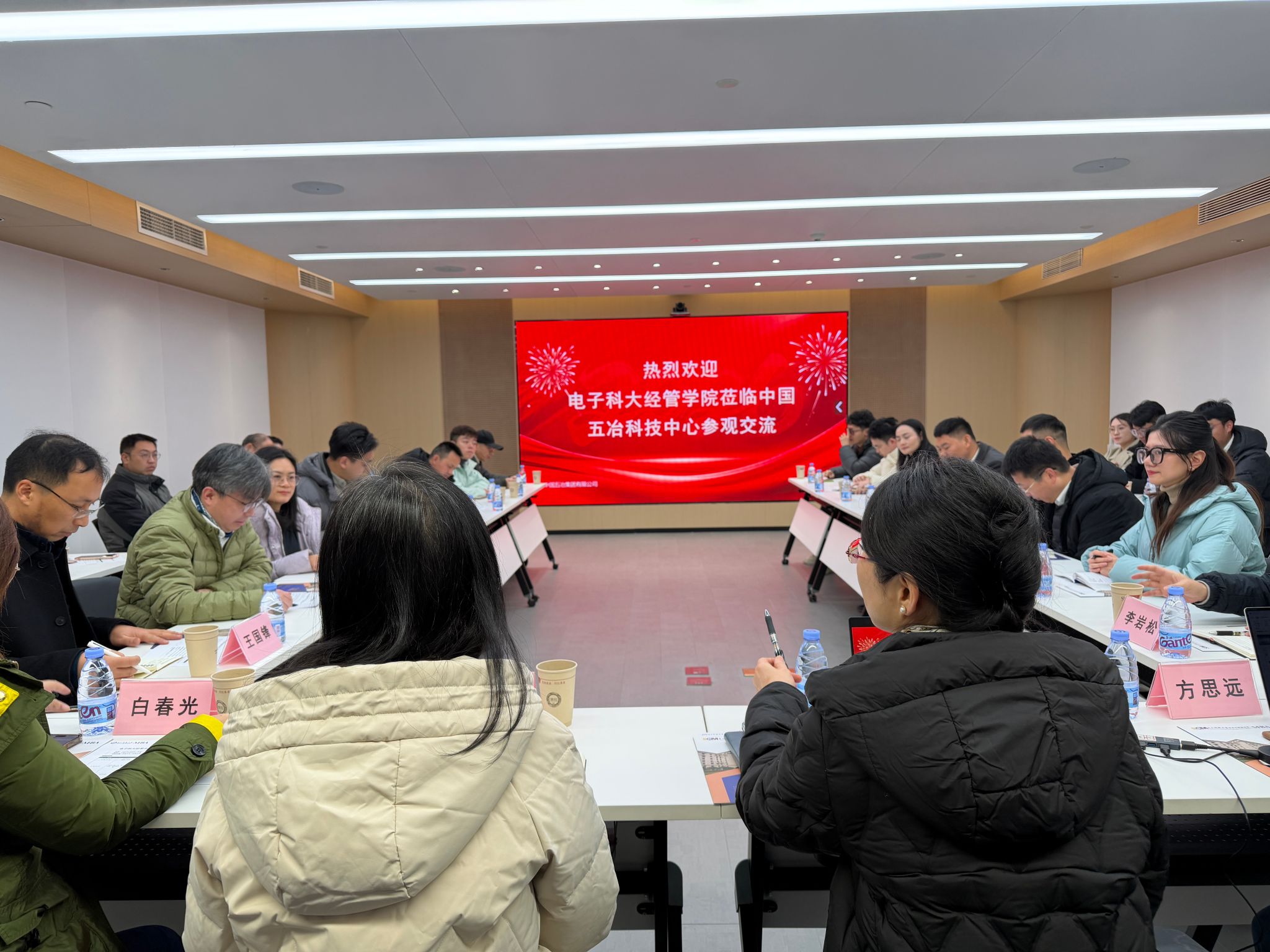 1月26日,电子科技大学经济与管理学院MBA 教育中心组织师生代表团,开展了一场别开生面的“名企行”活动。在 MBA 教育中心主任宋艳、副主任王国锋以及白春光教授的带领下,学院教师、业界导师及MBA学生、校友一行,走进中国五冶集团科技中心,深度探秘这座被誉为会“呼吸”的超级建筑,共话建筑行业的绿色化与智能化未来。