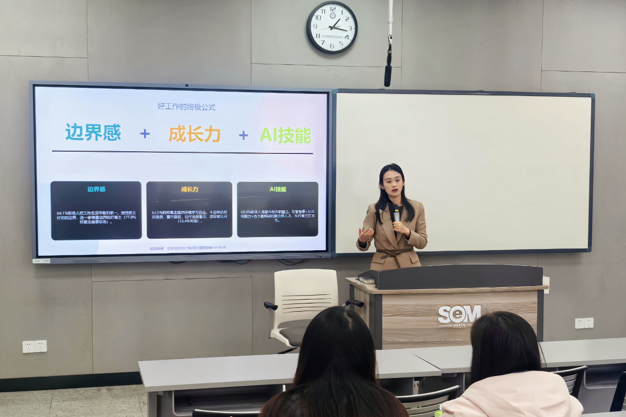 中国MBA联盟副秘书长、国家认证职业生涯规划咨询师郭缘学姐,结合当下就业市场数据,点明 AI 岗位需求激增的行业趋势,精准匹配经管学子优势赛道。同时详解国央企求职优势、筛选规则与准入门槛,并解读好工作核心特质,帮助大家快速理清求职定位、建立科学择业认知。
